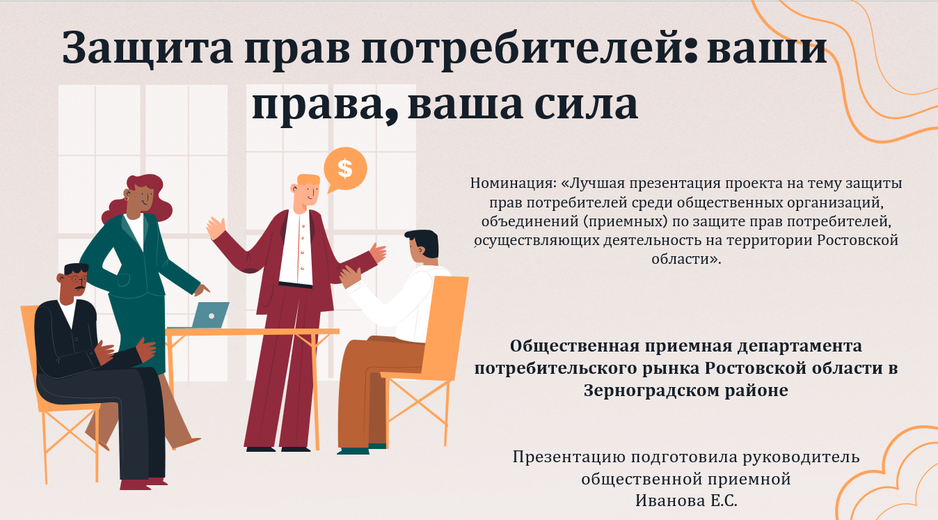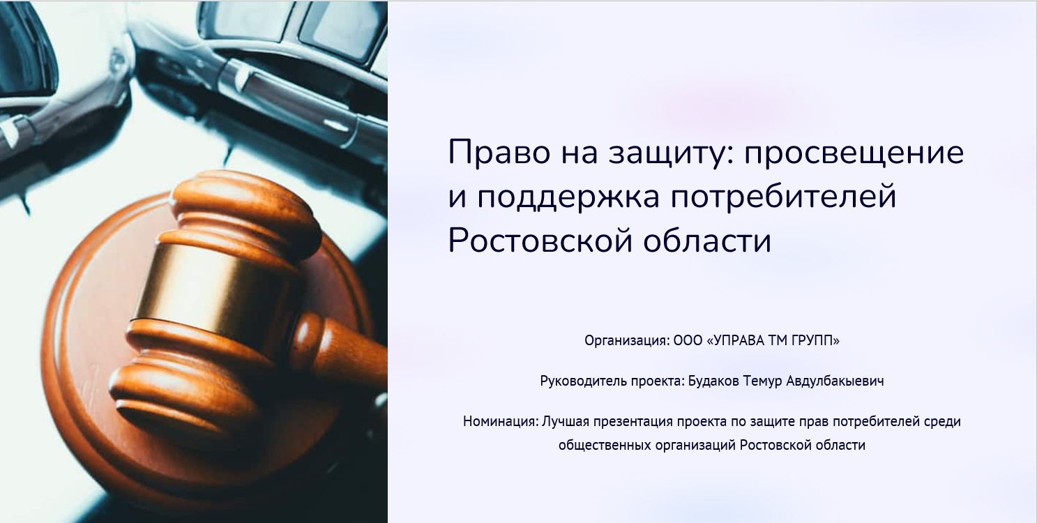 «Лучшая презентация проекта на тему защиты прав потребителей среди общественных организаций, объединений (приемных) по защите прав потребителей, осуществляющих деятельность на территории Ростовской области»